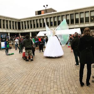 Not only does Sasha do stilt walking, but she performs stilt dancing! What better way to engage a crowd than having fun and dancing with them. On top of stilt dancing, she also performs with props on stilts! Ranging from a selection of every color of Isis wings, bubble guns, silk fans, parasol, hula hoop, poi, and more, she brings yet another performance aspect to the art of stilt walking. She also offers LED props such as LED Isis wings, LED fans, LED hula hoop, and LED poi.