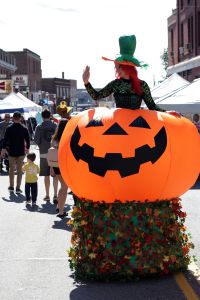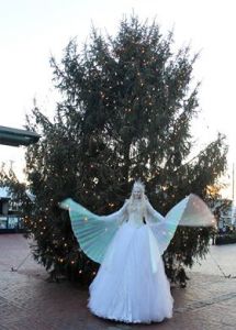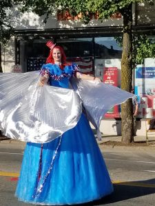 Our witch popping out of a giant light up pumpkin costume is perfect for Halloween. The Ice Queen/Angel/Snow Princess is great for any winter fest, fire and ice, holiday stroll, Christmas event, tree lighting ceremony, parade, etc. We have a stilt walking Cinderella, a cute clown, circus stripes, red sequins, gold sequins, peacock, color themes, Mardi Gras, La Hora Loca, masquerade, and so much more.